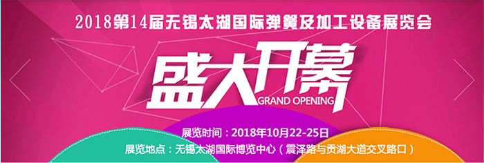 各位新老客戶2018第十四屆無錫太湖國際彈簧及加工設(shè)備展覽會(huì)將于時(shí)間:(2018.10.22 ---10.25)在無錫太湖國際博覽中心舉辦。屆時(shí)將吸引來自世界五大洲的彈簧行業(yè)精英人士共同研究、探討彈簧行業(yè)的發(fā)展,同時(shí)來自德國、日本、 中國(香港、臺(tái)灣、內(nèi)地)的200家彈簧設(shè)備制造廠家將展示他們前沿的彈簧制造技術(shù)。在此,永騰熱烈歡迎國內(nèi)外彈簧生產(chǎn)、 制造及汽車配件制造相關(guān)行業(yè)的客商光臨永騰展位(展位號:B1-01),共同為推動(dòng)中國彈簧制造工業(yè)的發(fā)展而努力!